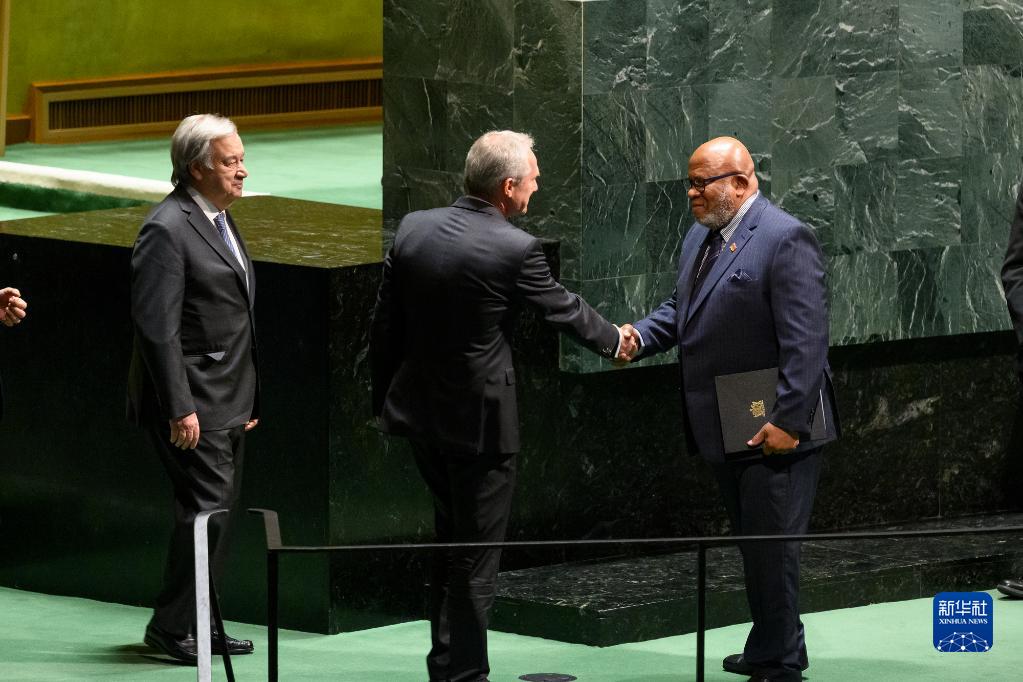 聯(lián)合國大會(huì )1日選舉特立尼達和多巴哥常駐聯(lián)合國代表丹尼斯·弗朗西斯為第78屆聯(lián)大主席。新華社發(fā)(聯(lián)合國供圖/洛伊·費利普攝)