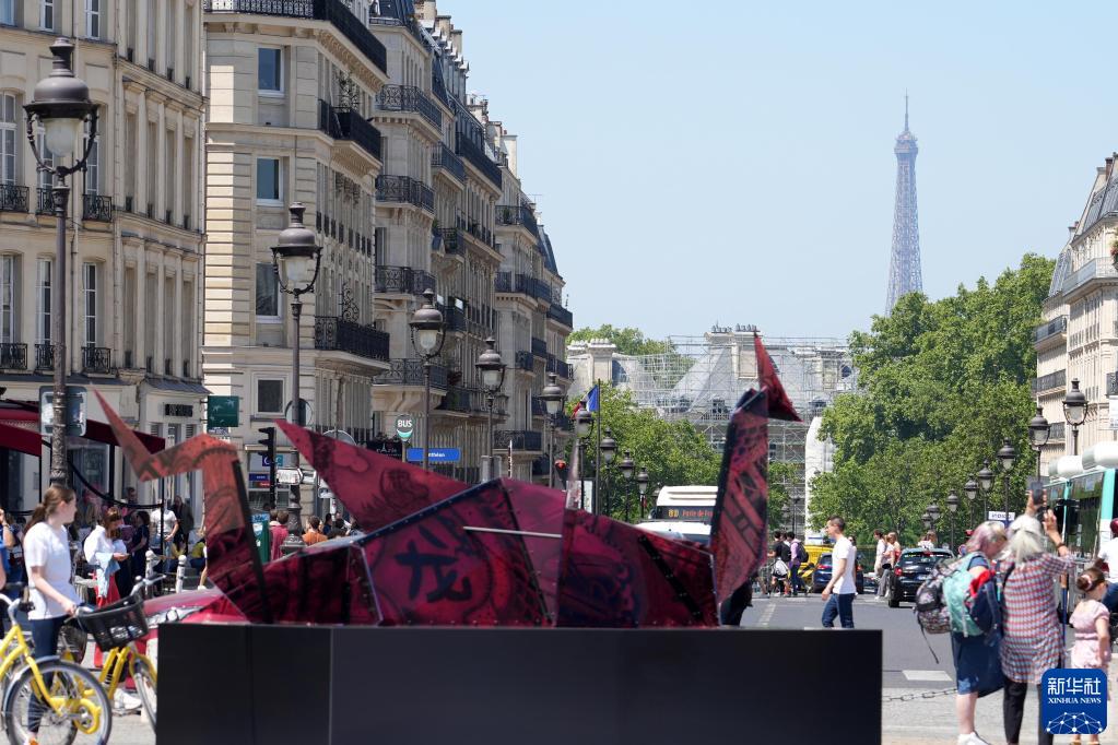 這是6月1日在法國巴黎先賢祠廣場(chǎng)拍攝的“中國龍”雕塑作品。