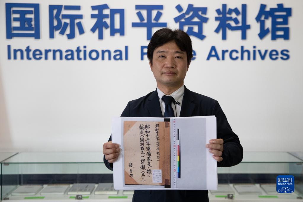 6月1日,在黑龍江外國語(yǔ)學(xué)院國際和平資料館,日本學(xué)者松野誠也展示新發(fā)現的資料。