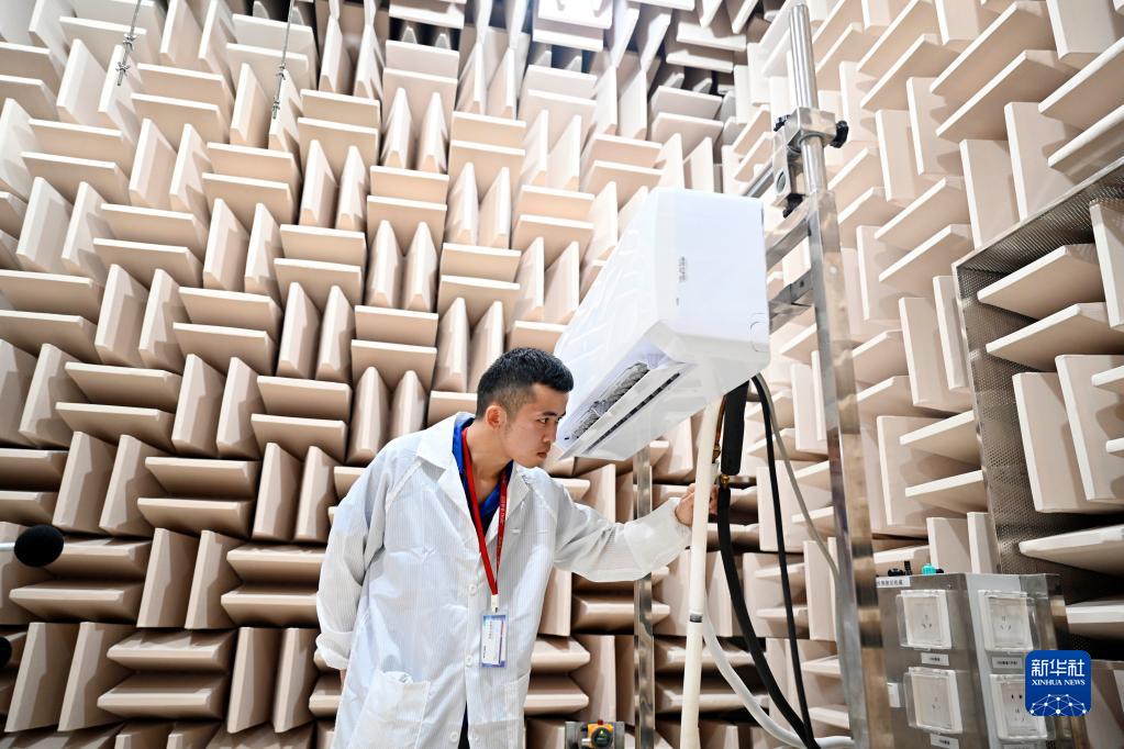 6月2日,技術(shù)人員在柳江區一家空調企業(yè)的實(shí)驗室里對即將上市的產(chǎn)品開(kāi)展噪音測試。