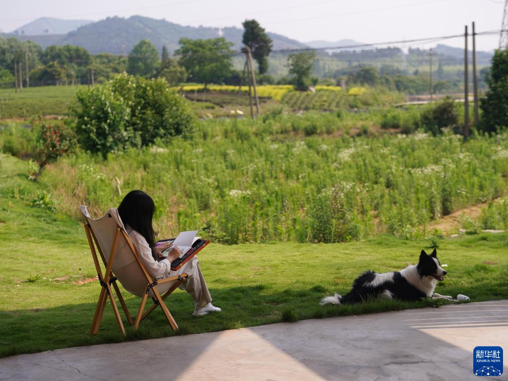 6月2日,曾是互聯(lián)網(wǎng)UI設計師的陳予佳在“數字游民公社”進(jìn)行繪畫(huà)創(chuàng )作。