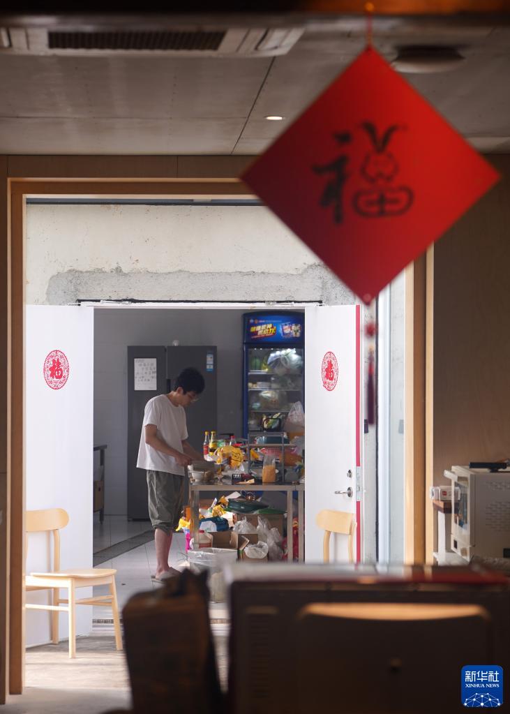 6月1日,“數字游民”艾因在共享廚房?jì)茸鲲垺?/p>