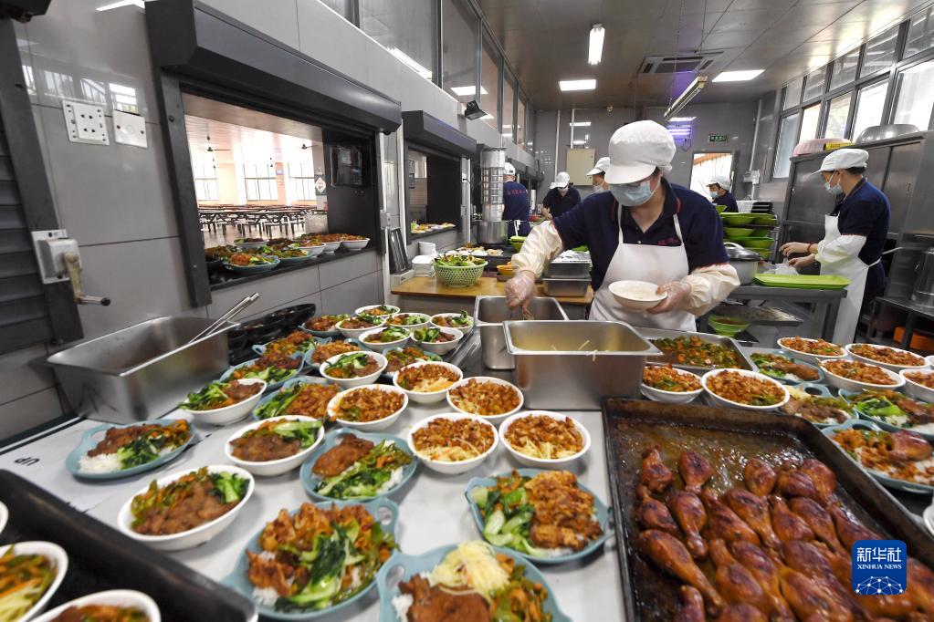 6月2日,食堂師傅在南京市第九中學(xué)食堂為學(xué)生配制營(yíng)養餐。