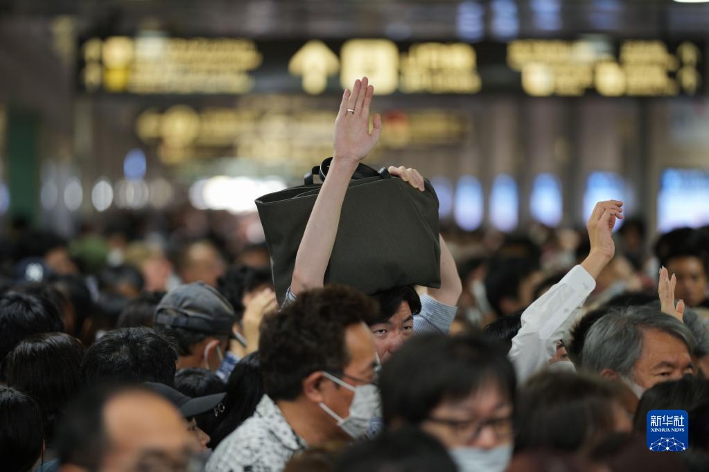 6月3日,乘客在日本名古屋車(chē)站等待新干線(xiàn)開(kāi)車(chē)。