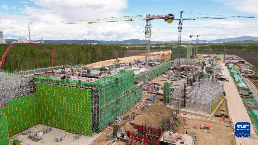 這是6月2日拍攝的伊春西站主體結構施工現場(chǎng)(無(wú)人機照片)。
