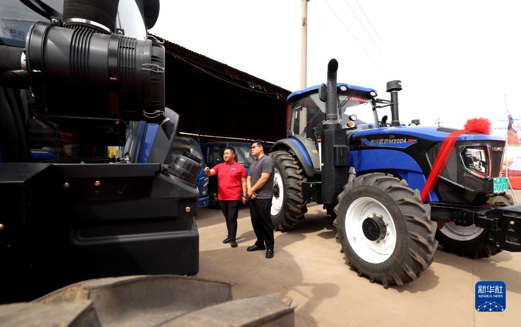 6月2日,在河北省晉州市一家農機銷(xiāo)售公司,顧客選購農用拖拉機。