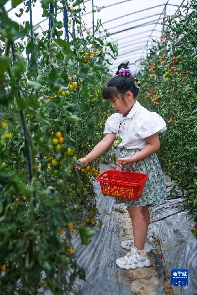 6月3日,在位于長(cháng)興縣虹星橋鎮鄭家村的金唐灣生態(tài)農業(yè)基地內,游客采摘成熟的小番茄。.
