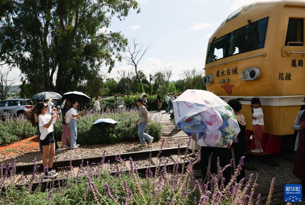 6月3日,游客在建水小火車(chē)鄉會(huì )橋站拍照。