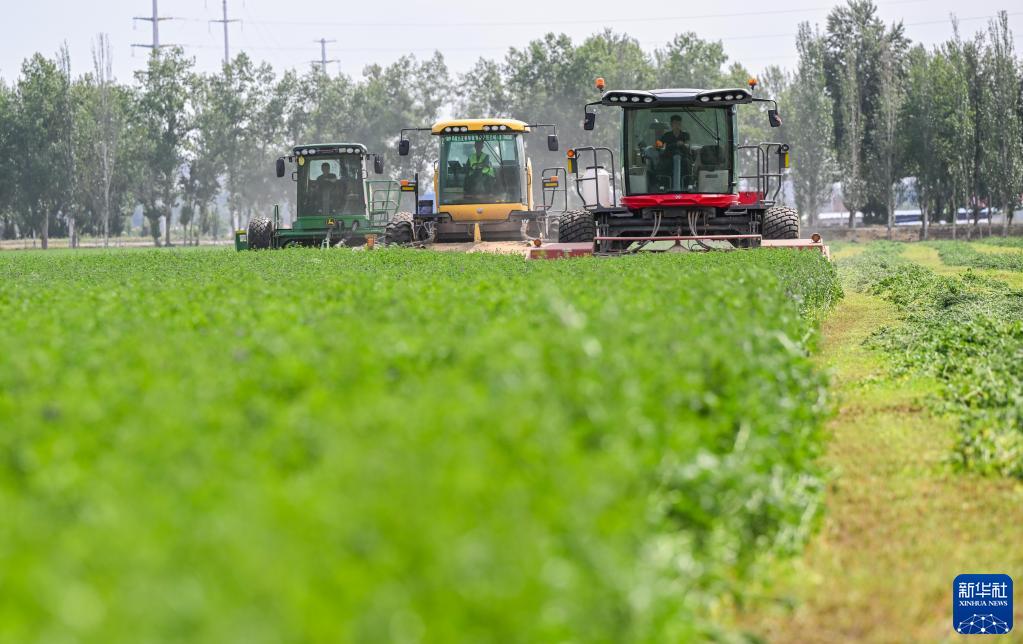 近日,內蒙古呼和浩特市土默特左旗國家現代農業(yè)示范區內,3000多畝優(yōu)質(zhì)苜蓿迎來(lái)了第一茬收割,大型機械車(chē)輛在田間忙碌。近年來(lái),呼和浩特市積極建設苜蓿產(chǎn)業(yè)化種植示范基地,增加優(yōu)質(zhì)飼草種植面積,提升優(yōu)質(zhì)飼草自給率,為奶業(yè)全產(chǎn)業(yè)鏈發(fā)展提供重要保障。