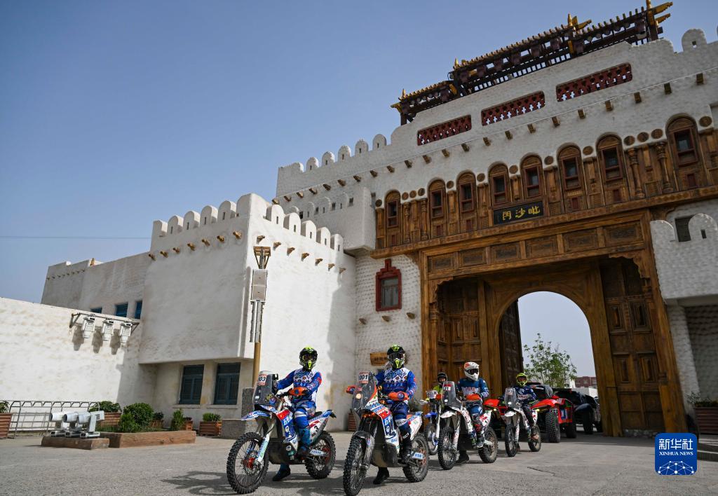 6月1日,在新疆和田地區約特干故城景區,2023年環(huán)塔拉力賽參賽代表參加旅游展示活動(dòng)。
