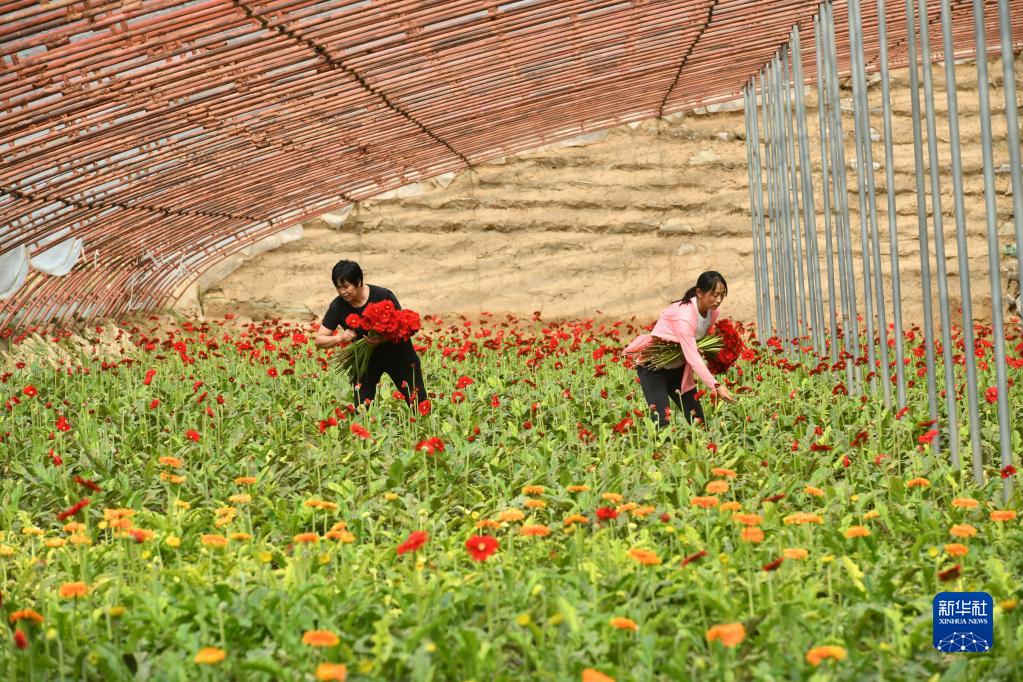 6月4日,花農在獻縣十五級鎮十五級村扶郎鮮花種植家庭農場(chǎng)花棚內采摘鮮花。