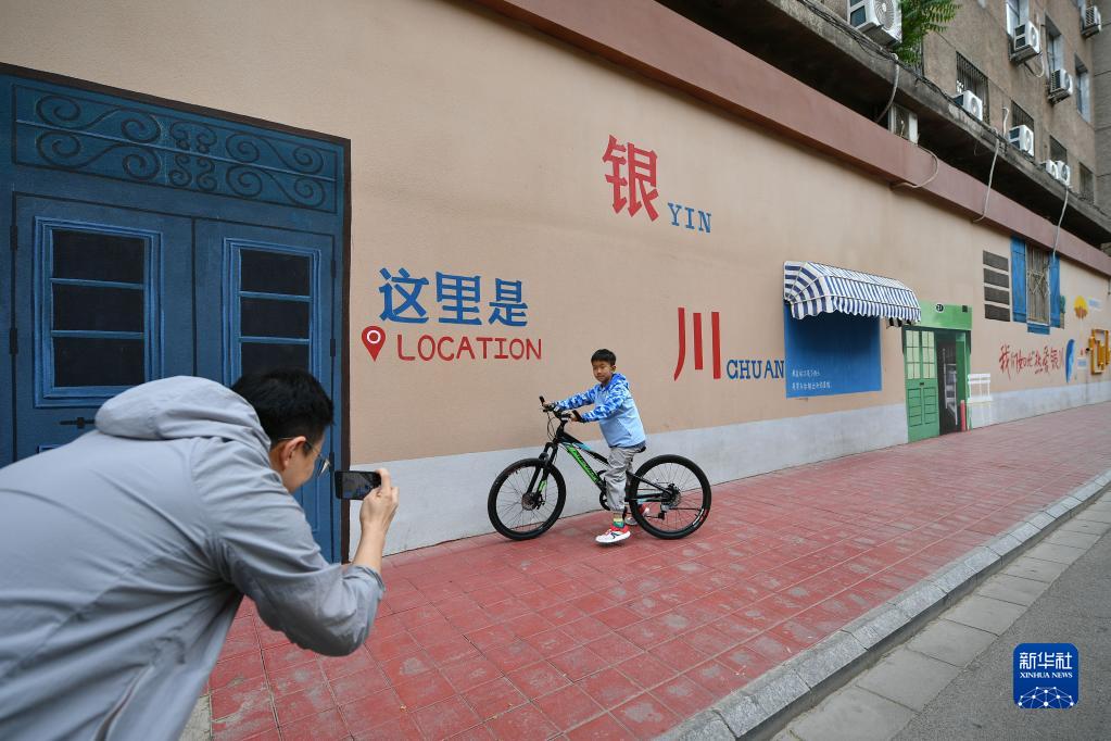 6月4日,市民在銀川市興慶區自強巷拍照打卡。