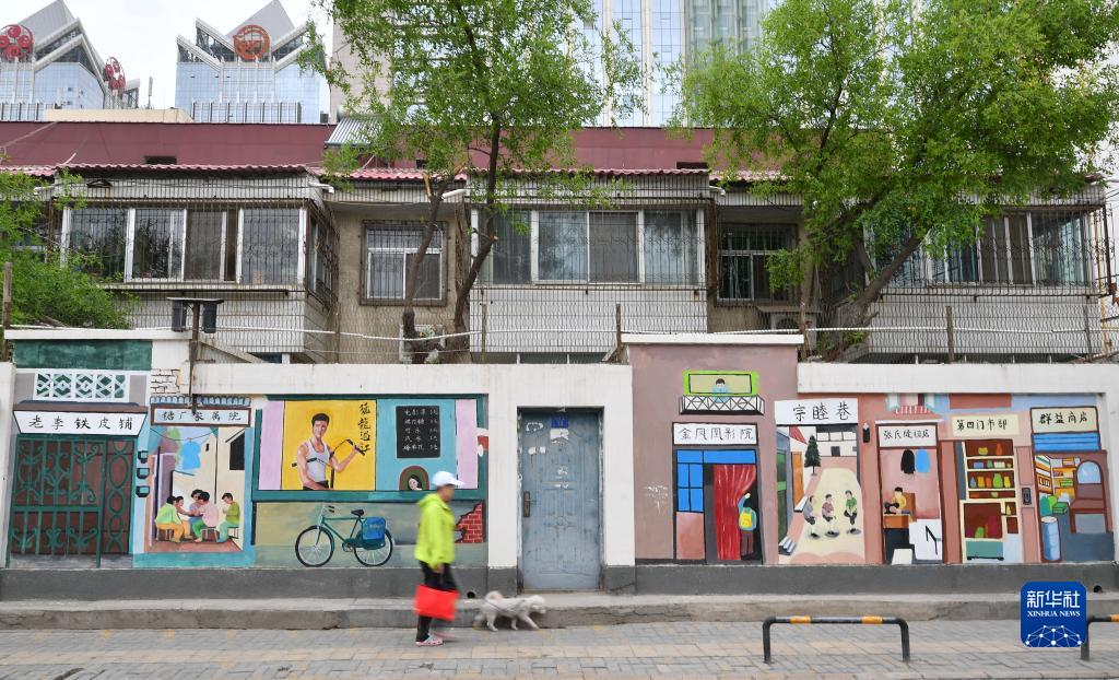 6月4日,市民經(jīng)過(guò)銀川市興慶區教育巷特色墻繪。