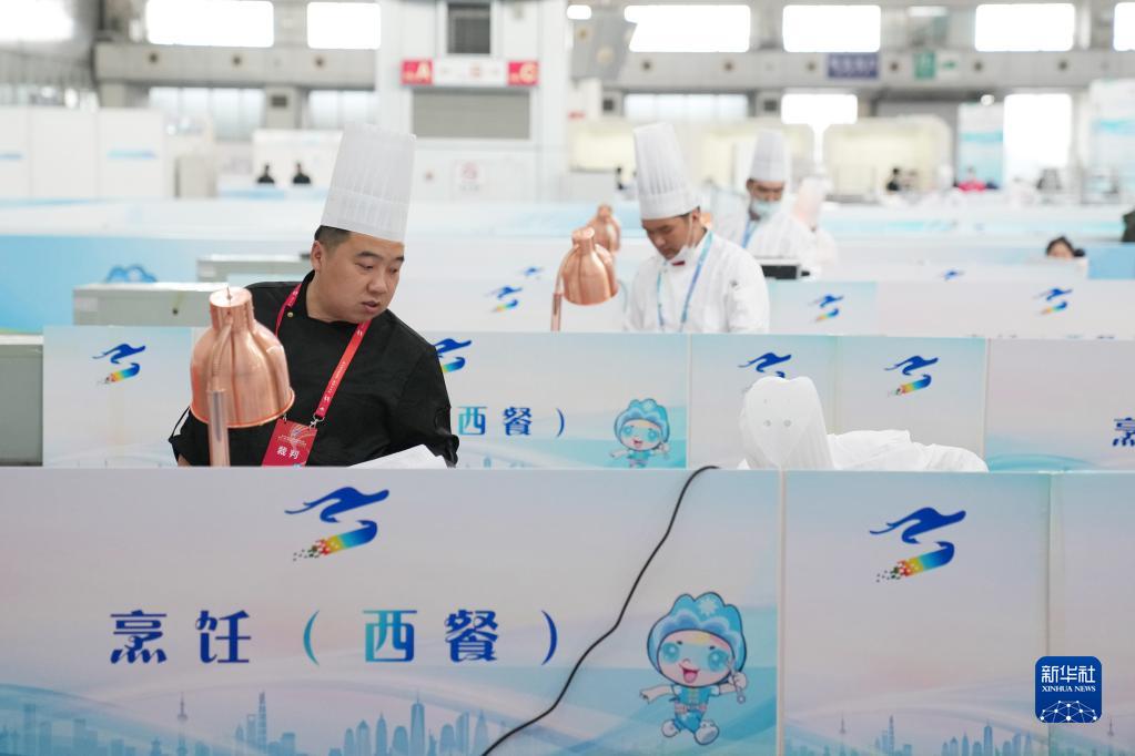 6月5日,裁判在烹飪(西餐)項目比賽現場(chǎng)觀(guān)看選手比賽。