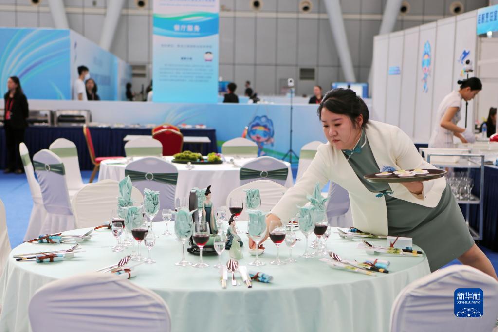 6月5日,選手在參加餐廳服務(wù)比賽。