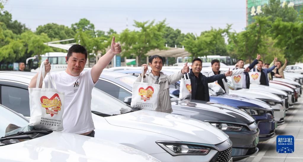 6月5日,在江蘇省淮安市,參與“愛(ài)心送考”活動(dòng)的網(wǎng)約車(chē)司機列隊集合。