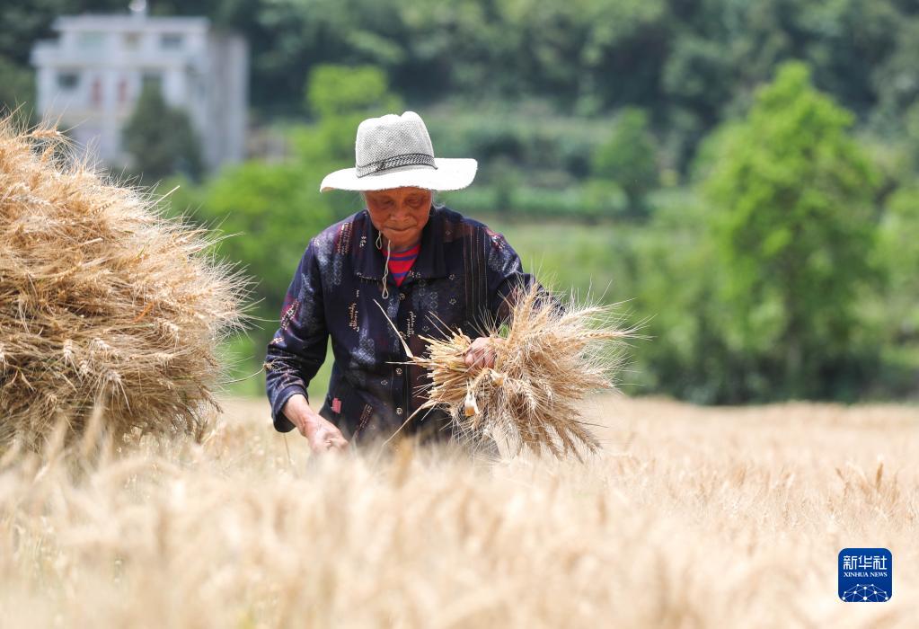 5月31日,村民在貴州省貴陽(yáng)市開(kāi)陽(yáng)縣宅吉鄉堰塘村的高標準農田里收割小麥。