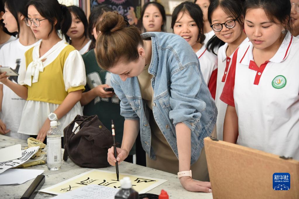 近日,“邂逅中國”來(lái)華留學(xué)生社會(huì )實(shí)踐活動(dòng)在貴州舉行。6月5日,來(lái)自突尼斯、巴基斯坦、老撾、巴西、印度尼西亞等國家的20名來(lái)華留學(xué)生來(lái)到貴州省黔南布依族苗族自治州三都水族自治縣的三都高級中學(xué),和學(xué)生們一起參加該校舉行的第一屆國際文化節。