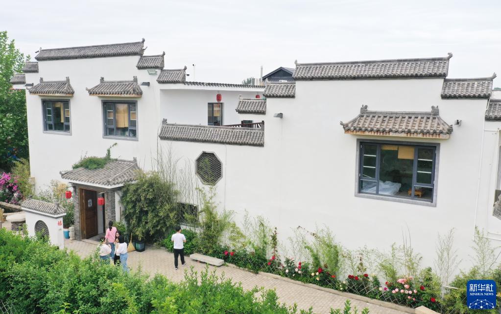 6月5日,游客在秦皇島市北戴河區費石莊村一家精品民宿的庭院內交流(無(wú)人機照片)。