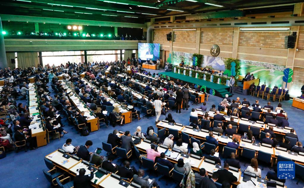 這是6月5日在肯尼亞首都內羅畢拍攝的第二屆聯(lián)合國人居大會(huì )開(kāi)幕式會(huì )場(chǎng)。