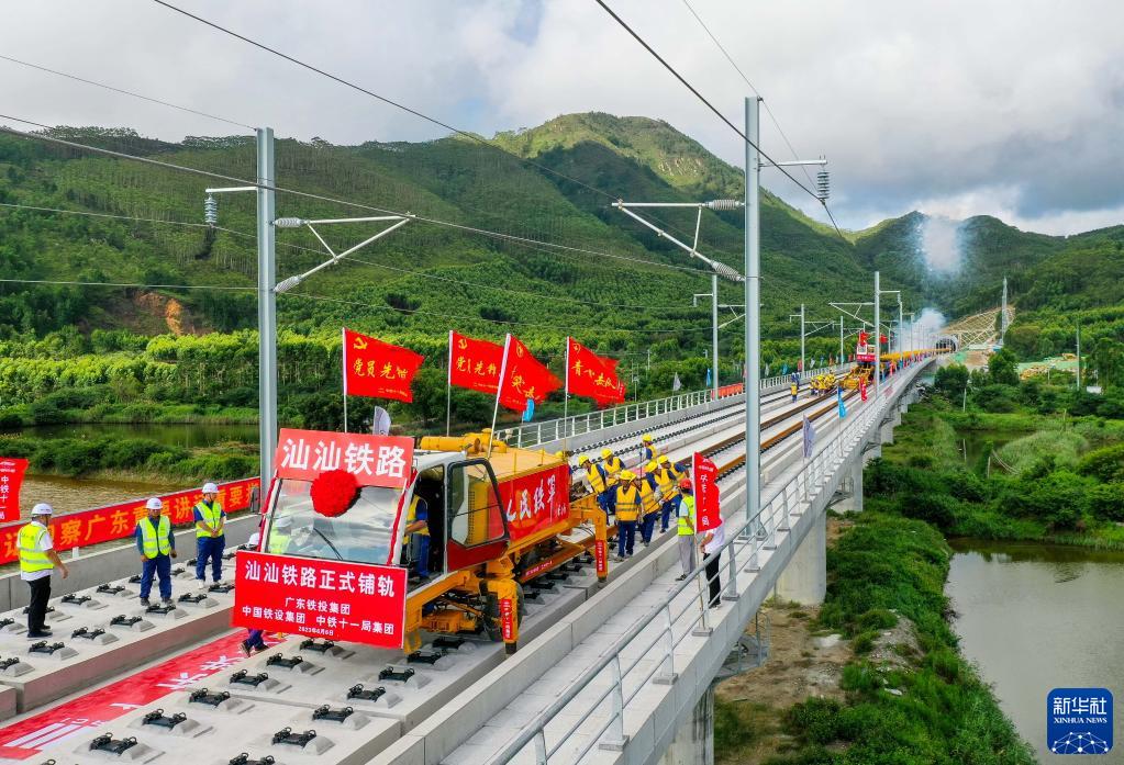 當日,中鐵十一局鋪軌機組在汕(尾)汕(頭)鐵路汕尾螺河特大橋上鋪設一對500米長(cháng)鋼軌,汕汕鐵路進(jìn)入全線(xiàn)鋪軌階段。