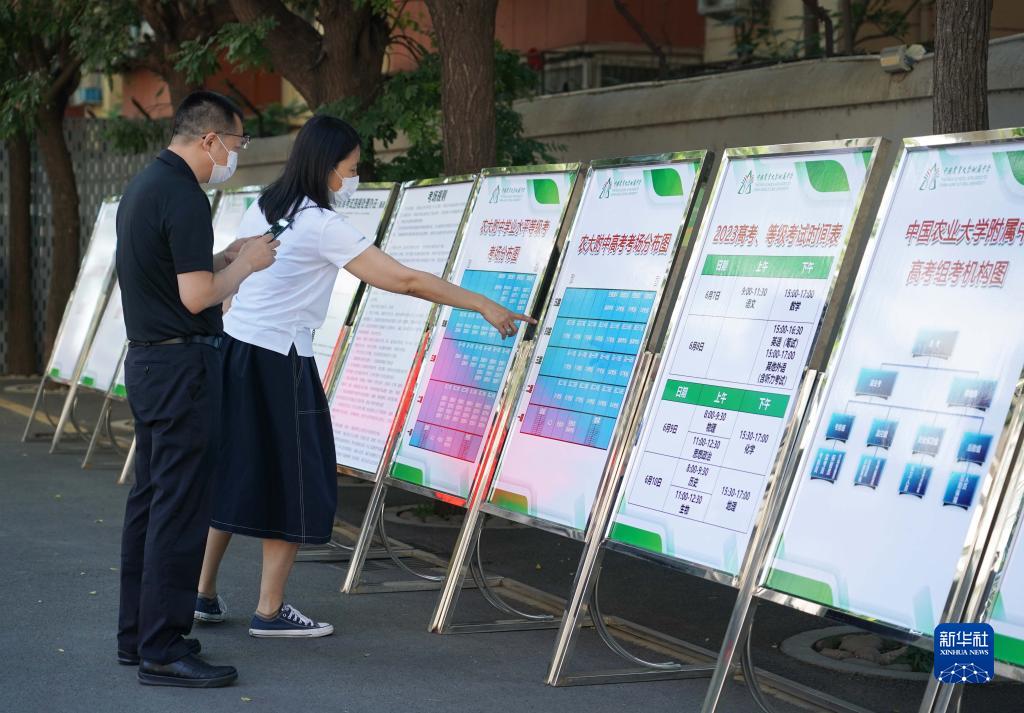6月6日,在北京中國農業(yè)大學(xué)附屬中學(xué)考點(diǎn),考生家長(cháng)在查看考場(chǎng)信息。