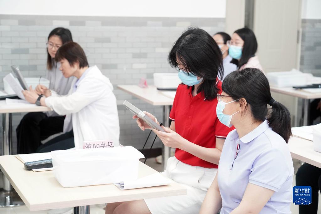 6月6日,在中國農業(yè)大學(xué)附屬中學(xué)考點(diǎn),考務(wù)人員進(jìn)行高考考前培訓。