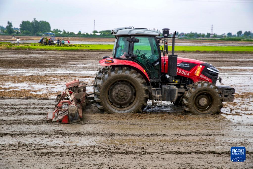 6月6日,村民駕駛農機在江蘇省泰州市姜堰區顧高鎮塘橋村平整田地。