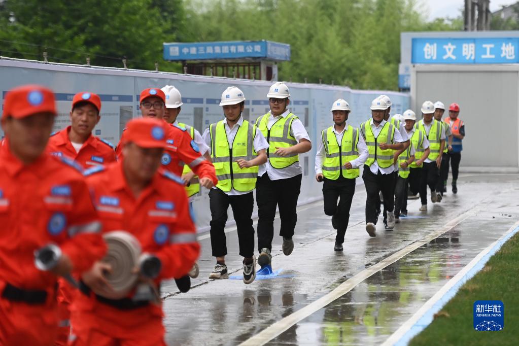 當日,浙江省杭州市富陽(yáng)區“安全生產(chǎn)月”消防應急演練在中建三局富陽(yáng)銀湖生物信息產(chǎn)業(yè)園項目工地啟動(dòng),現場(chǎng)進(jìn)行火災撲救、人員施救等環(huán)節的演練,以提升安全生產(chǎn)應急能力。