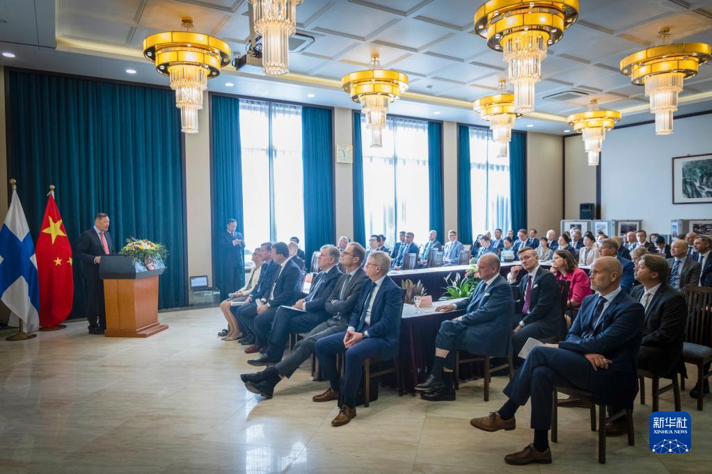 這是6月5日在芬蘭赫爾辛基拍攝的以“回顧中芬互利合作70年,攜手面向未來(lái)”為主題的研討與慶?;顒?dòng)現場(chǎng)。