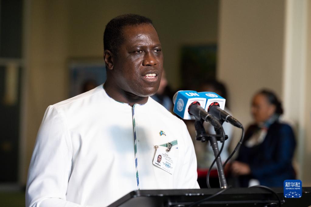6月6日,在位于紐約的聯(lián)合國總部,塞拉利昂外交與國際合作部長(cháng)弗朗西斯在塞拉利昂當選聯(lián)合國安理會(huì )非常任理事國后在記者見(jiàn)面會(huì )上講話(huà)。