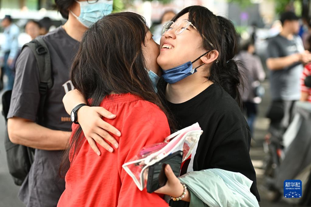 6月7日,在北京師范大學(xué)附屬實(shí)驗中學(xué)考點(diǎn)門(mén)口,一名考生進(jìn)入考點(diǎn)前擁抱母親。