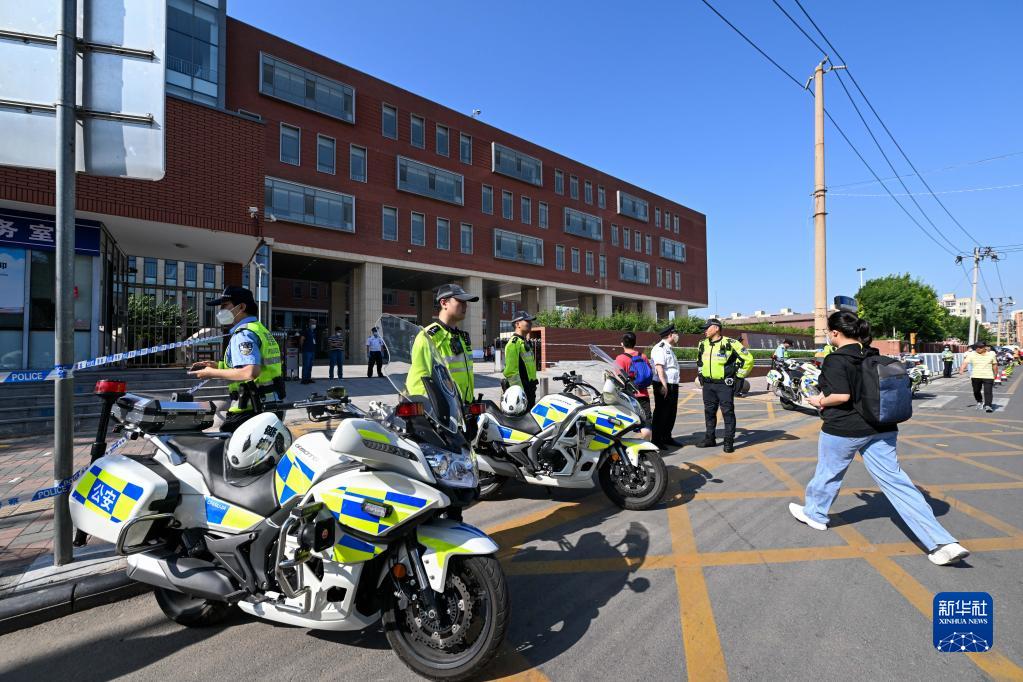 6月7日,在天津市第四中學(xué)考點(diǎn),公安民警在考場(chǎng)外執勤,隨時(shí)為考生提供服務(wù)。