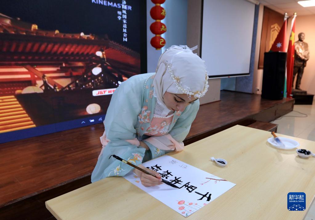 6月5日,在約旦首都安曼,一名選手在“漢語(yǔ)橋”世界大學(xué)生中文比賽約旦賽區決賽上展示才藝。
