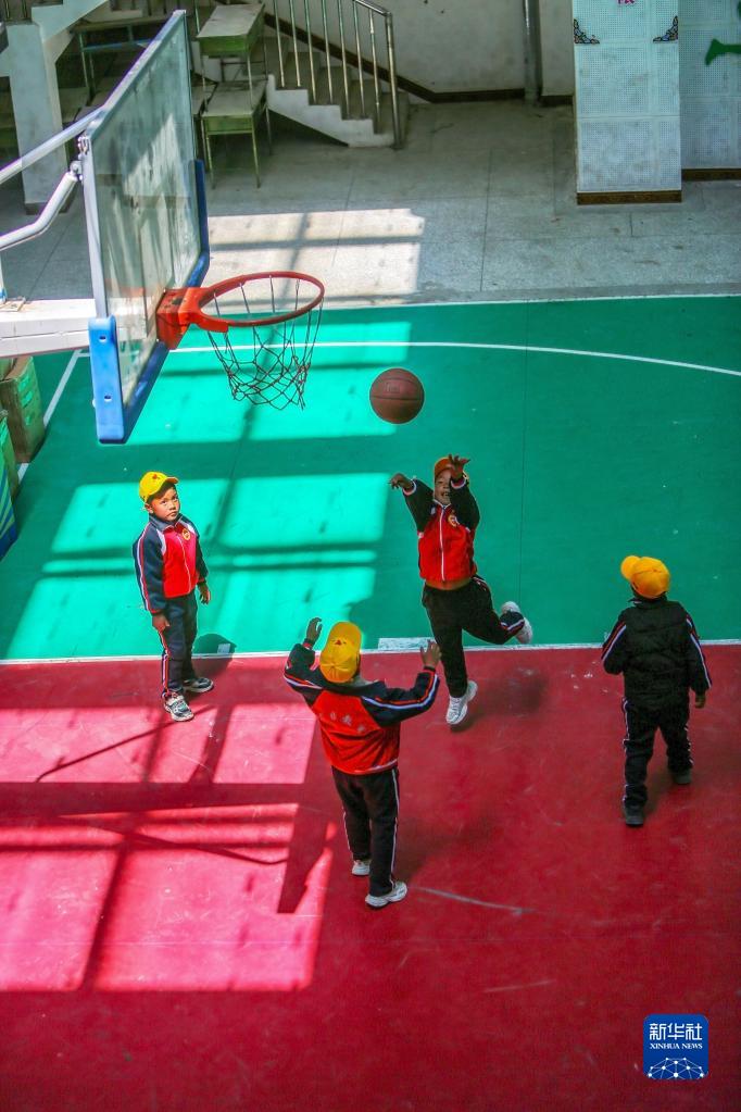 6月5日,扎西宗鄉完全小學(xué)學(xué)生在籃球課上投籃。新華社記者 邵澤東 攝
