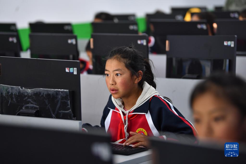 扎西宗鄉完全小學(xué)的學(xué)生在上計算機課(6月5日攝)。新華社記者 晉美多吉 攝