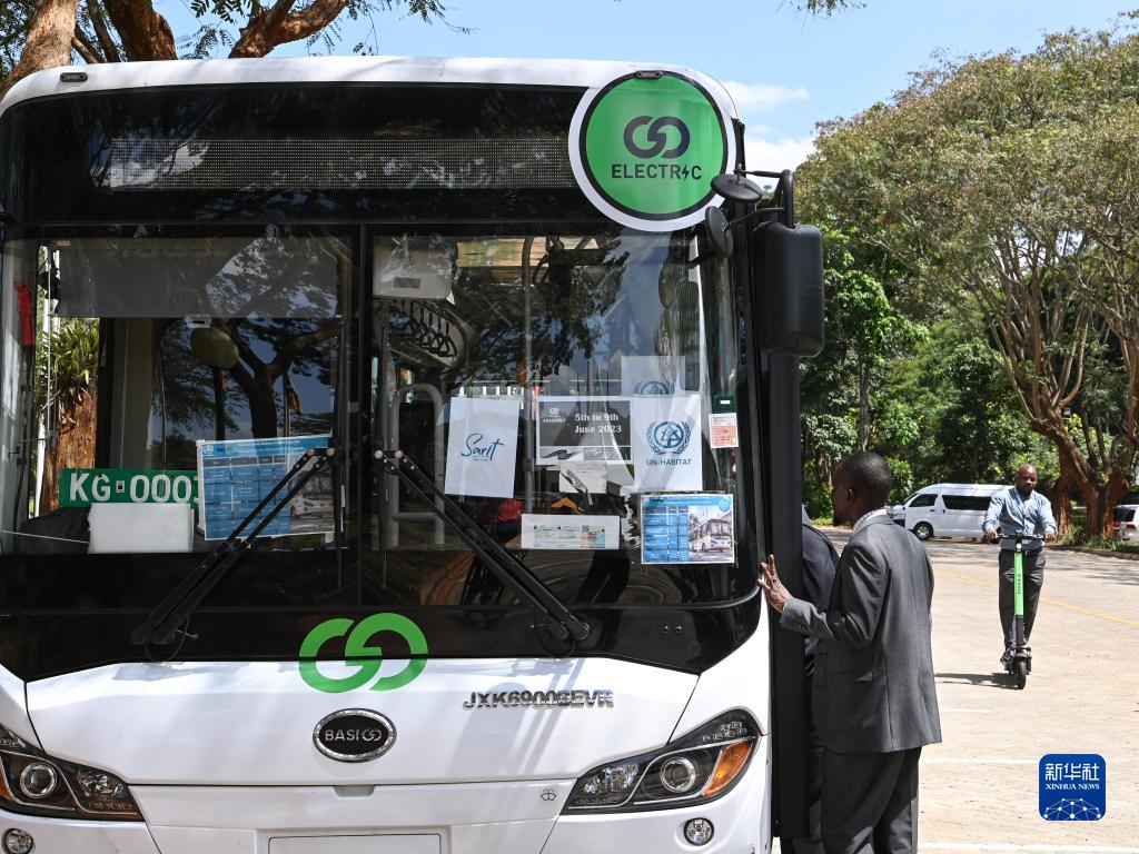 6月7日,在聯(lián)合國位于肯尼亞首都內羅畢的辦事處,人們在低碳和電動(dòng)交通載具展上參觀(guān)電動(dòng)公交車(chē)。