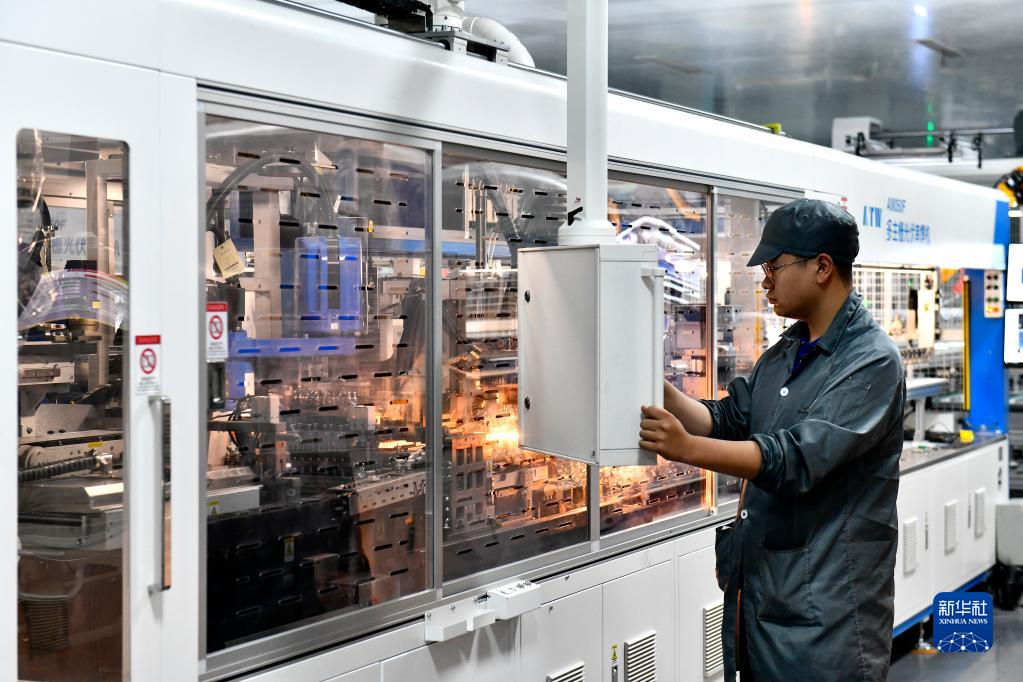 6月7日,在山東泉為新能源科技有限公司,工作人員在生產(chǎn)光伏組件。