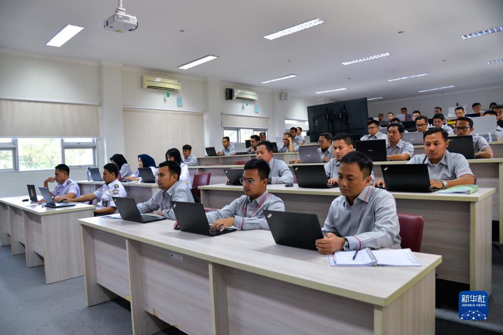 6月7日,在位于印度尼西亞茉莉芬市的印尼鐵路理工學(xué)院,學(xué)員在接受雅萬(wàn)高鐵運行控制中心調度人員培訓。