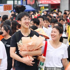 6月8日,在貴陽(yáng)市烏當中學(xué)考點(diǎn),考生結束考試后在考場(chǎng)外合影留念。