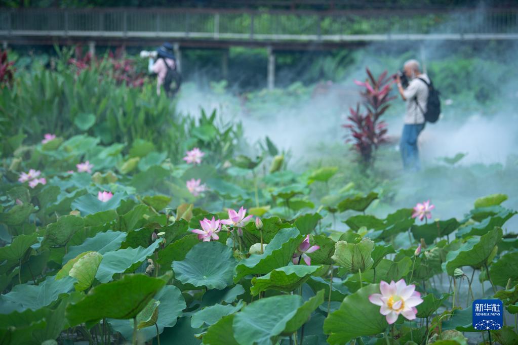 6月9日,人們在澳門(mén)龍環(huán)葡韻拍攝荷花。