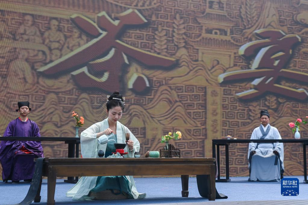 6月9日,活動(dòng)現場(chǎng)舉行的入選國家級非物質(zhì)文化遺產(chǎn)名錄的《徑山茶宴》展示。