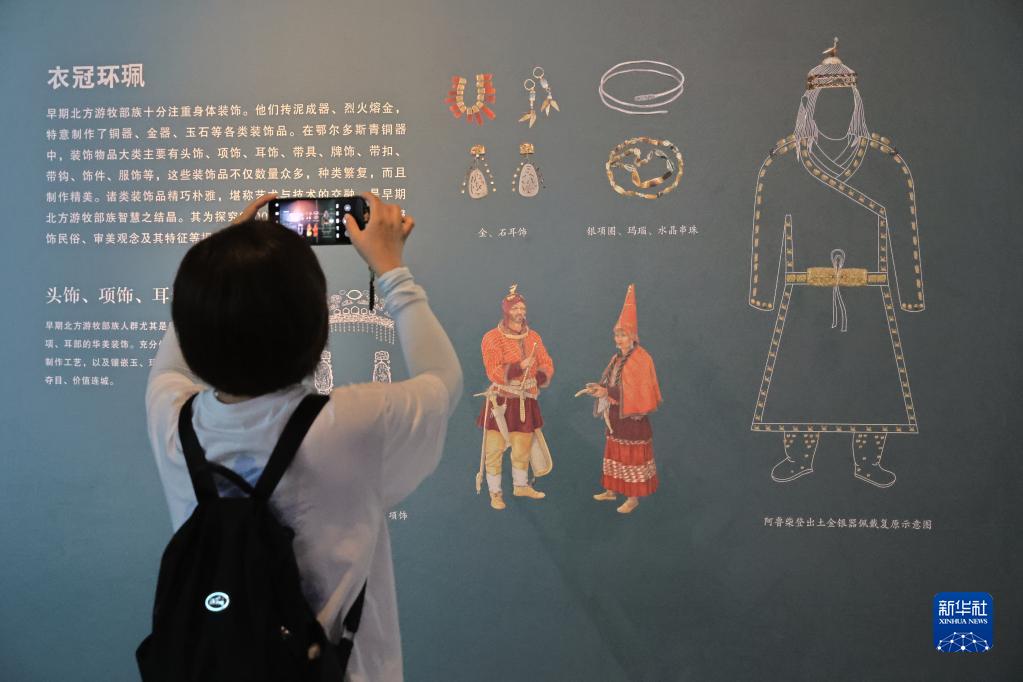 展覽分為穹宇長(cháng)青、陰山牧馬兩個(gè)部分,以鄂爾多斯青銅器、金器、銀器為載體,300余件精品文物再現了長(cháng)城沿線(xiàn)地帶以匈奴為代表的游牧民族早期草原文明的生活場(chǎng)景。