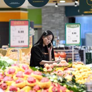 6月9日,顧客在山東省青州市一家超市選購商品。