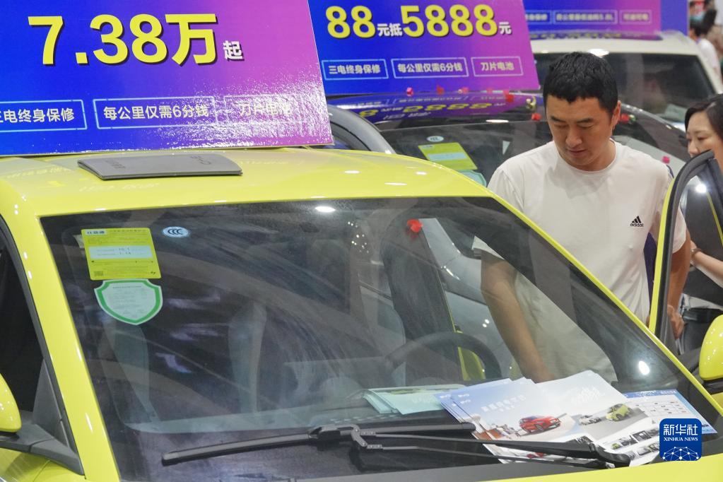 6月9日,消費者在山東煙臺夏季惠民車(chē)展上了解參展汽車(chē)。