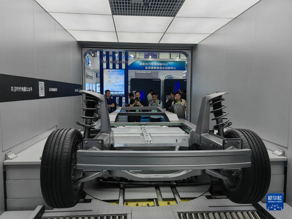 這是展覽會(huì )上展示的新能源汽車(chē)換電系統(6月9日攝)。