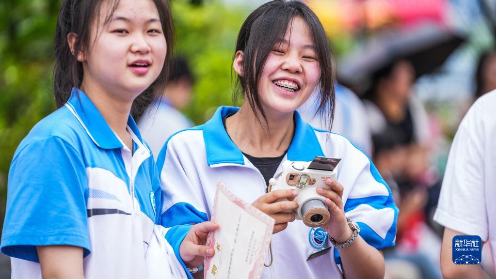 6月9日,烏當中學(xué)高三學(xué)生在校園廣場(chǎng)給同學(xué)們拍照。