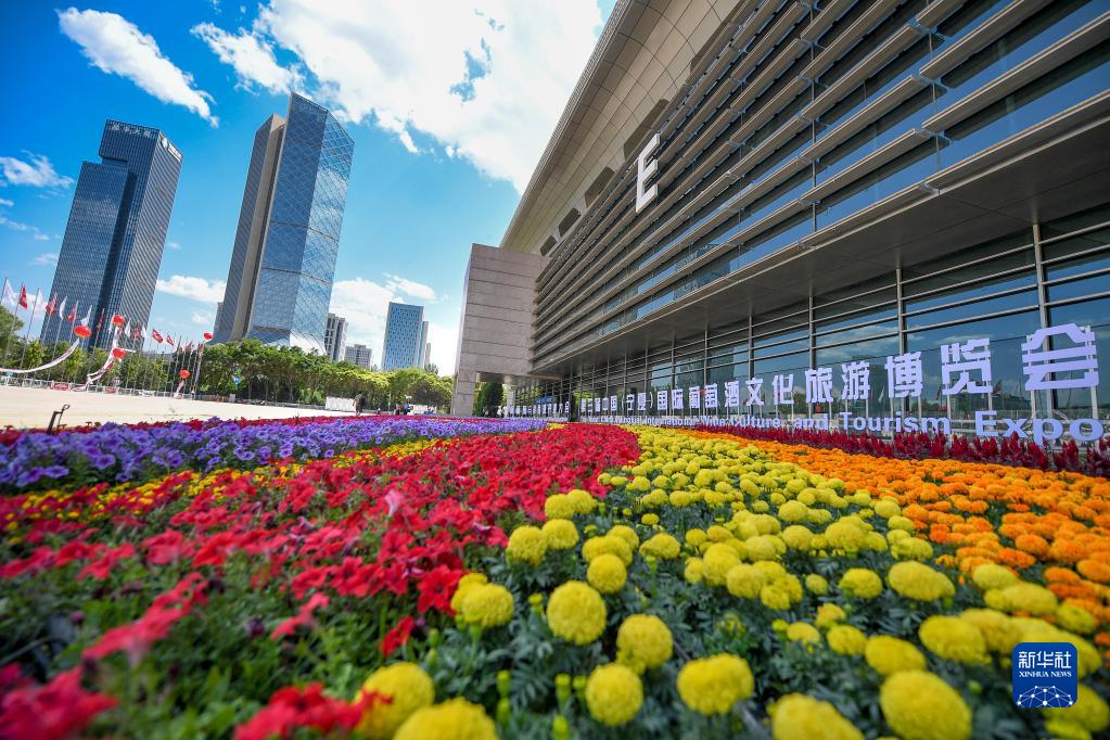 國際葡萄與葡萄酒產(chǎn)業(yè)大會(huì )、第三屆中國(寧夏)國際葡萄酒文化旅游博覽會(huì )開(kāi)幕式現場(chǎng)外景(6月9日攝)。