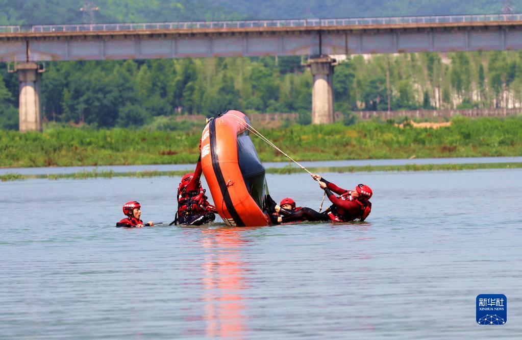 6月9日,在浙江省湖州市長(cháng)興縣合溪水庫煤山段,應急救援隊進(jìn)行水上救援演練。