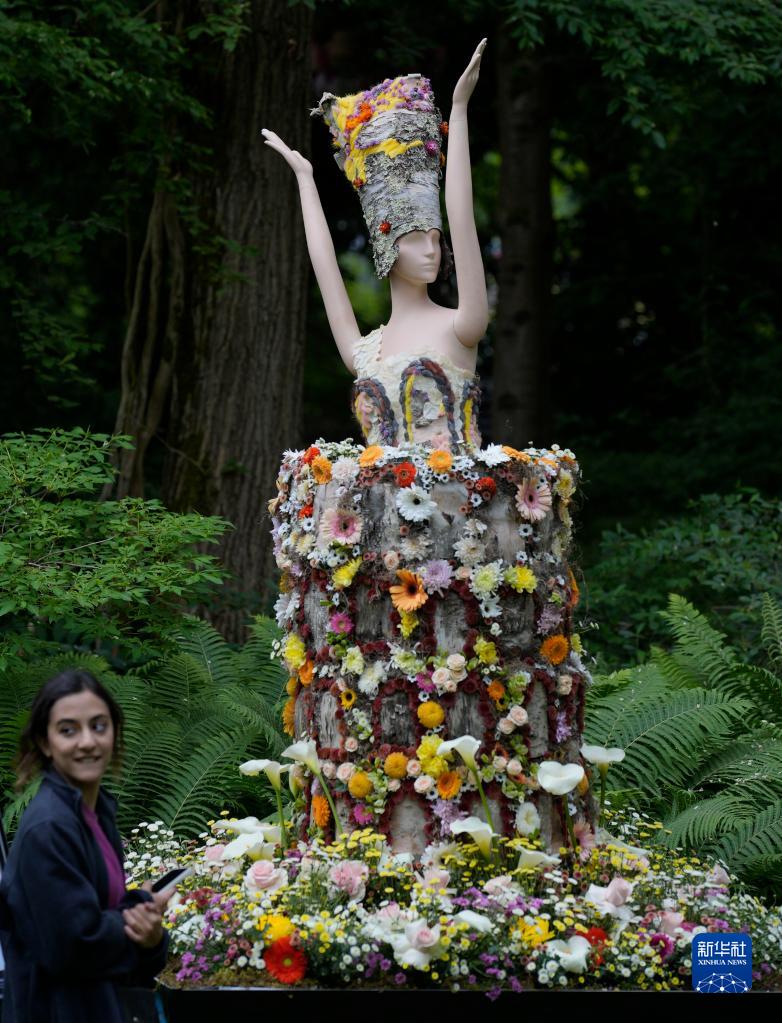 這是6月9日在加拿大溫哥華舉辦的“花卉城市之旅”花卉展上拍攝的花卉裝置藝術(shù)作品。